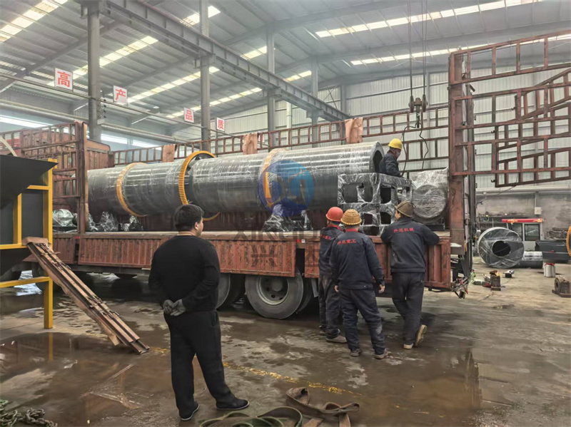 外貿(mào)發(fā)貨:一車準(zhǔn)備發(fā)往出口港口的有機(jī)肥烘干機(jī)及配套有機(jī)肥設(shè)備正在裝車中: