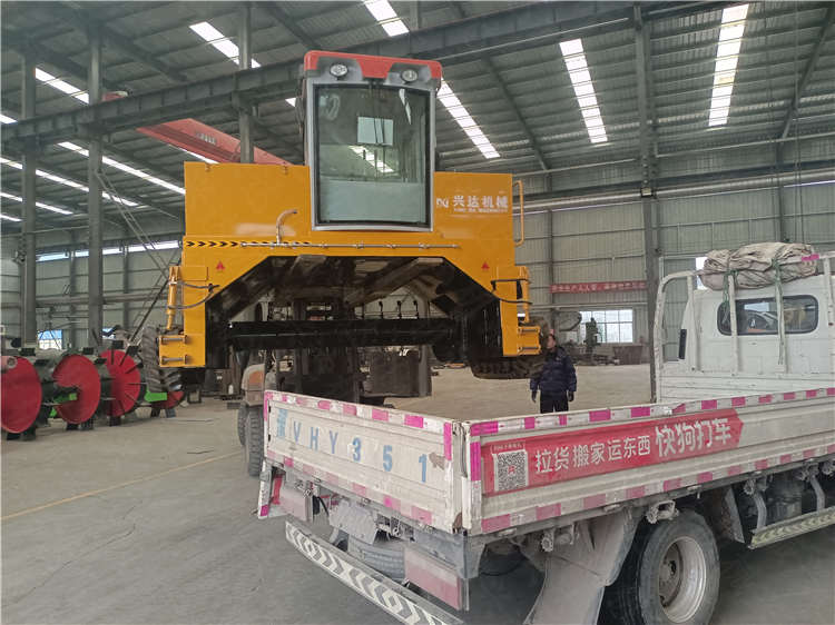 發(fā)貨現(xiàn)場(chǎng)型號(hào)2.4米豬糞履帶翻拋機(jī)裝車(chē)出發(fā)