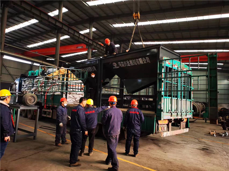 年產(chǎn)5萬(wàn)鴨糞有機(jī)肥生產(chǎn)線發(fā)貨現(xiàn)場(chǎng)