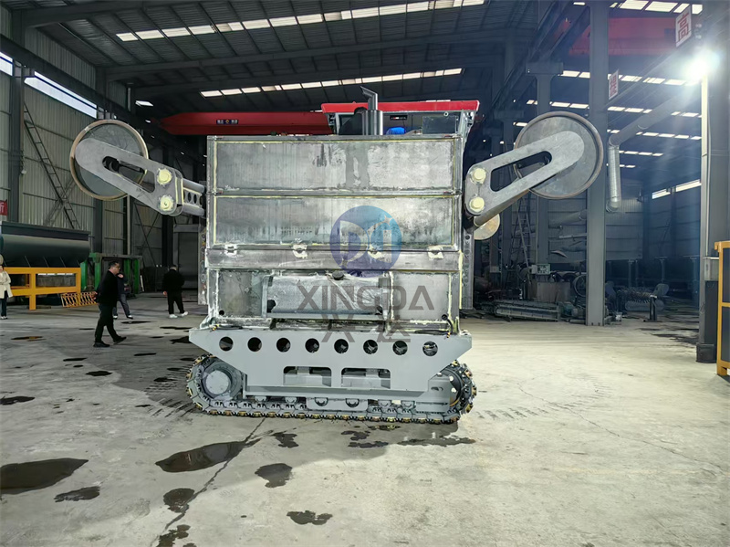 車間里正在制作客戶定制的5米全液壓有機肥翻拋設(shè)備履帶翻拋機:
