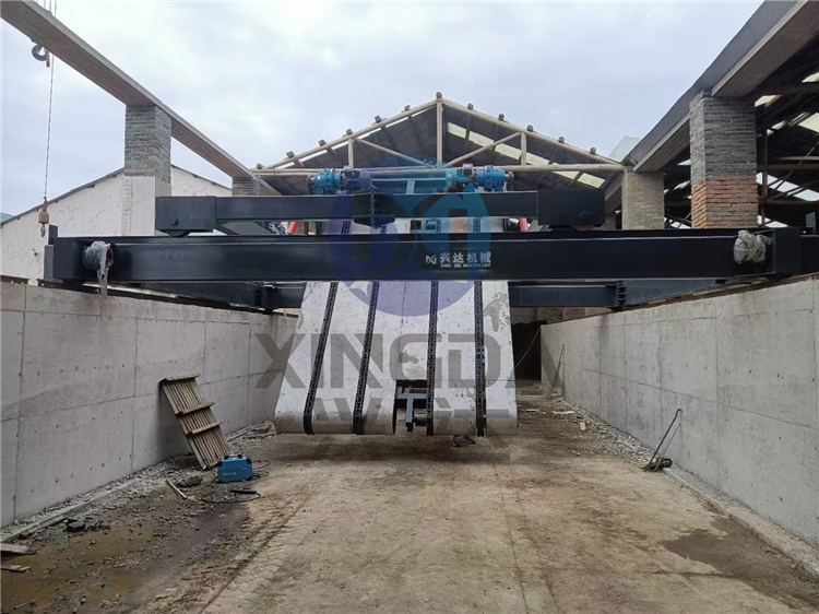 安徽宣城年產5萬噸有機肥生產線7米鏈板翻拋機安裝現場