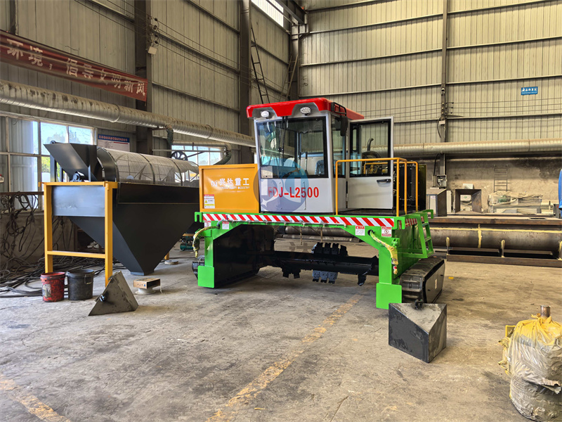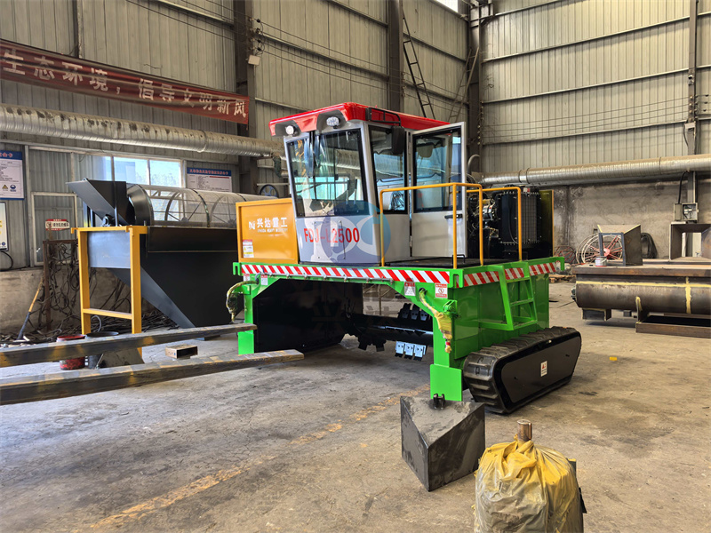 安徽又定購(gòu)一臺(tái)有機(jī)肥履帶翻拋機(jī),準(zhǔn)備開(kāi)始裝車(chē):履帶翻堆機(jī)通常由動(dòng)力系統(tǒng)、傳動(dòng)裝置、翻拋機(jī)構(gòu)和控制系統(tǒng)組成。動(dòng)力系統(tǒng)一般采用柴油發(fā)動(dòng)機(jī)或電動(dòng)機(jī),提供足夠的動(dòng)力以驅(qū)動(dòng)履帶和翻拋機(jī)構(gòu)工作。傳動(dòng)裝置則負(fù)責(zé)將動(dòng)力傳遞到各個(gè)工作部件,確保設(shè)備運(yùn)行平穩(wěn)可靠。翻拋機(jī)構(gòu)是核心部分,通過(guò)旋轉(zhuǎn)的刀片或耙齒將有機(jī)物料翻動(dòng),使其充分接觸空氣,加速發(fā)酵過(guò)程。控制系統(tǒng)則可以根據(jù)操作需求調(diào)整設(shè)備的工作參數(shù),如翻拋速度和深度等。
